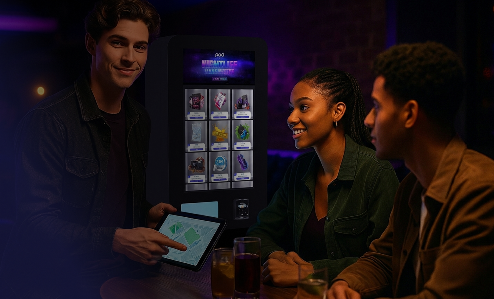 - Give nightlife venues a competitive edge with on-site smart vending machines that keep the party going without breaking the flow.
